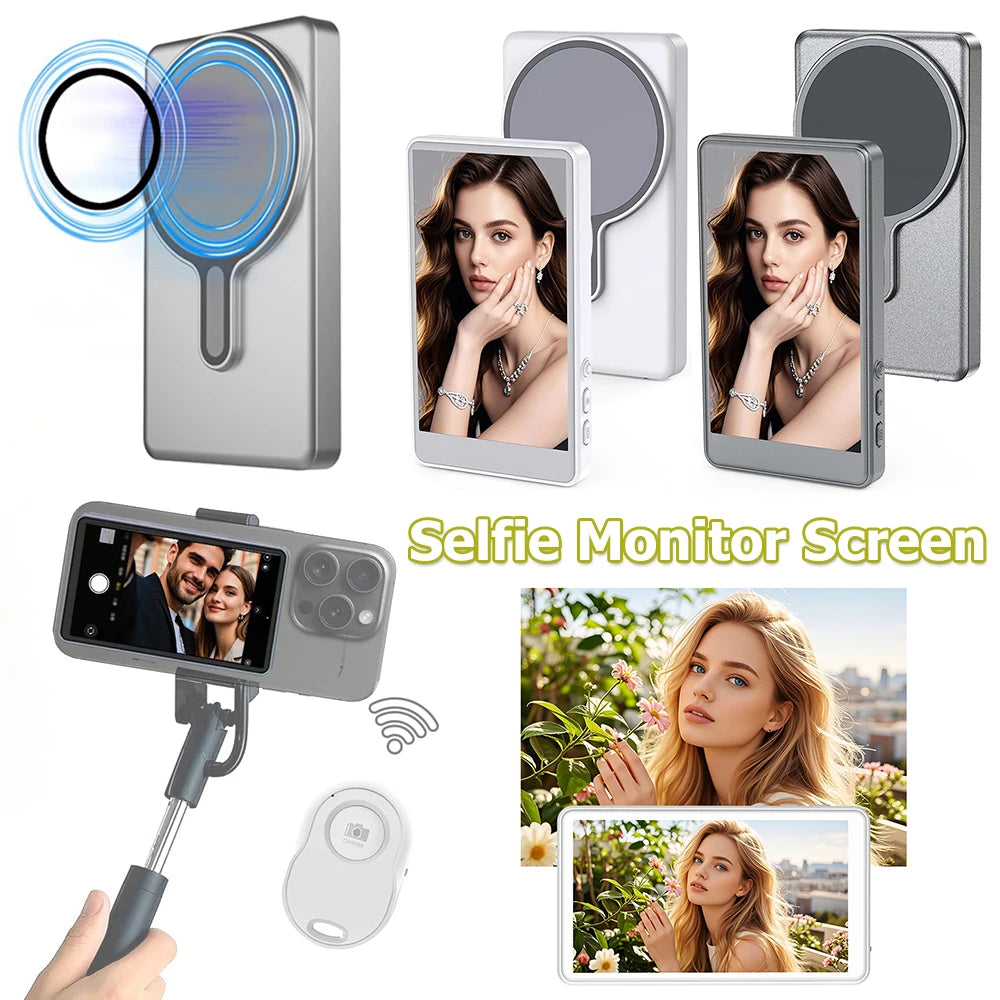 Magnetic phone vlog selfie monitor screen. This device is designed to be a portable imaging assistant for content creators, allowing them to use their phone’s higher-quality rear camera for vlogging and selfies while still being able to see a live preview of the shot.